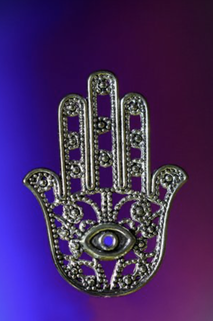 Wir können dabei jedoch nicht den Islam außer Acht lassen, der unter seinen wichtigsten Schutzsymbolen das Zeichen Hamsa oder Khamsa zählt. Es handelt sich ebenfalls um eine ausgespannte Hand – natürlich nicht die Hand von Moses‘ Schwester, sondern die von Fatima, einer der Töchter des Propheten Mohammed… Diese Hand wird gelegentlich mit einem Auge in der Handfläche dargestellt. Es ist das Auge Gottes, der die Herzen prüft…
